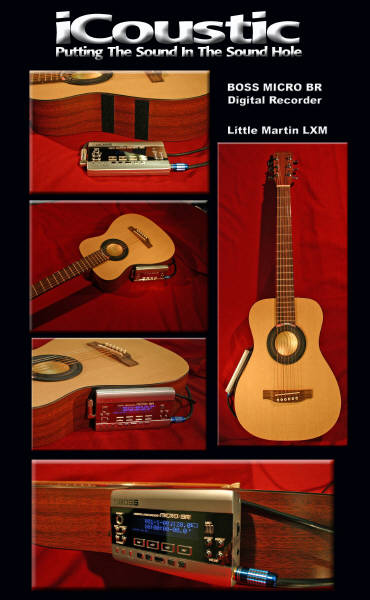 iCoustic System installed Installed with the iCoustic System and the BOSS MICRO BR, the iCoustic Little Martin Pro Package is just the right choice for serious players seeking to get the most out of their travel guitar. Play, record, enjoy the effects or just the drumbeat accompanyment right through your own guitar. The BOSS MICRO BR transforms your acoustic guitar into a one man recording studio. Featuring multi-track recording, a built in microphone and more than 300 effects this unit is a portable recording studio. With custom supplied cables from iCoustic the BOSS MICRO BR and the iCoustic system work seamlessly to give you unparalleled versatility. Just the right combination for solo performers and singer songwriters. Features: