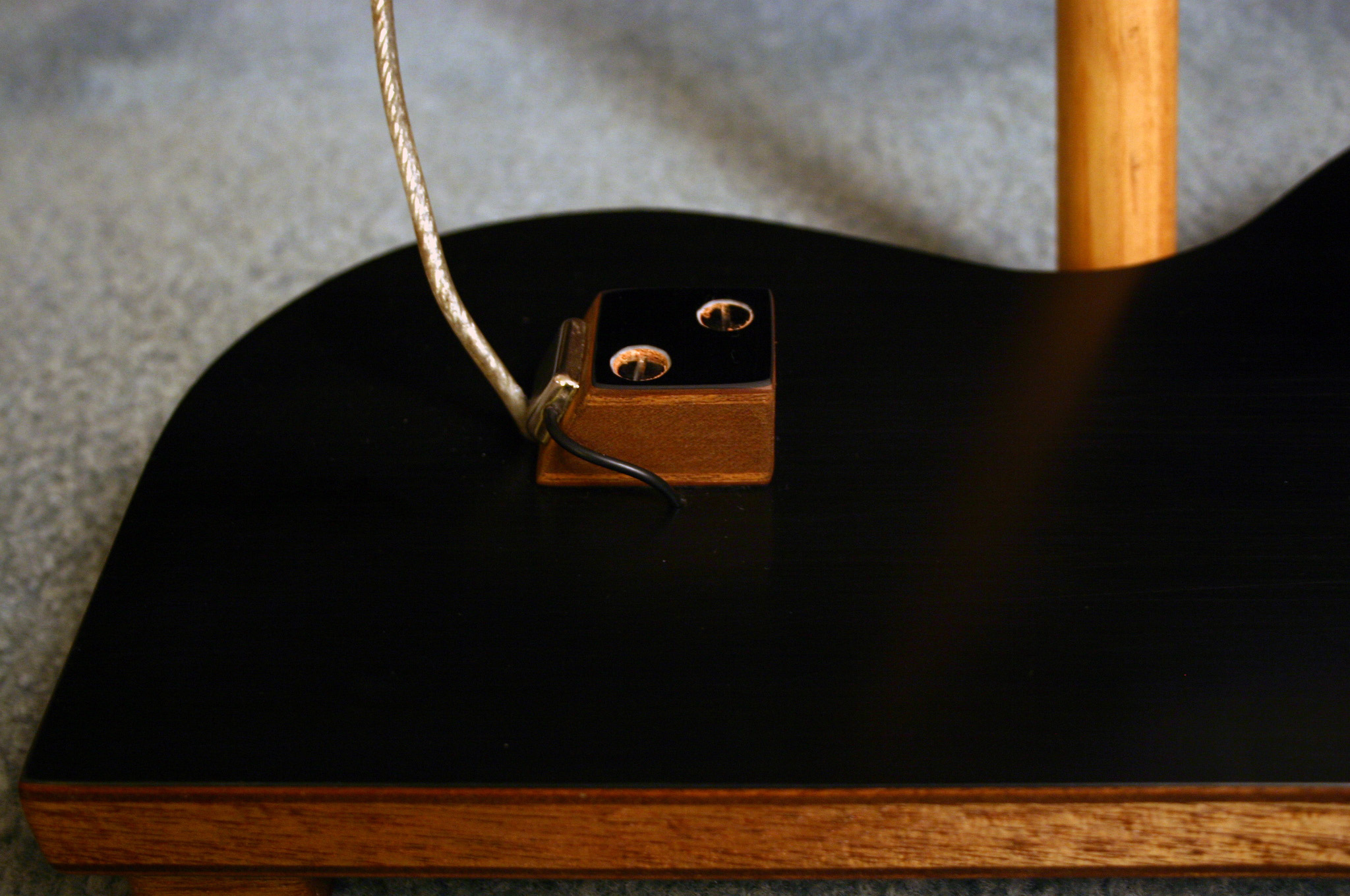 Black polyester finish over solid mahogany
